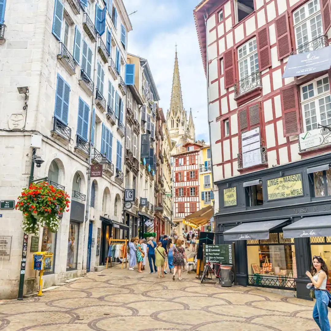 About insideLittle Bayonnethe smaller, more ‘modern’ side of town (still quite old by American standards), you’ll find onecharming riversidelined with cream-colored buildings, distinguished by their brightly colored shutters, street markets and family restaurants.