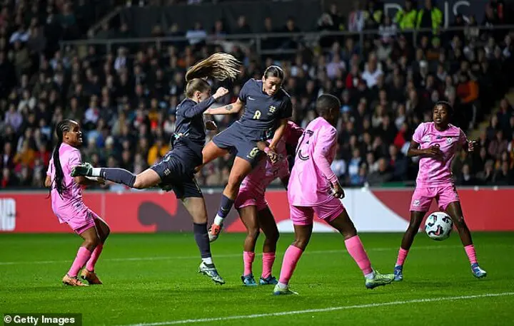 England dominated possession and on the odd occasion a careless pass gifted South Africa the ball, they did little with it. The Lionesses had been threatening a second goal before it arrived in the 23rd minute. Chloe Kelly played the ball out to Maya Le Tissier on the right and her deep cross into the box was met by the powerful head of Clinton.