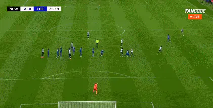 26' Willock heads towards goal, Disasi knocks it into own net! Newcastle 2-0 Chelsea