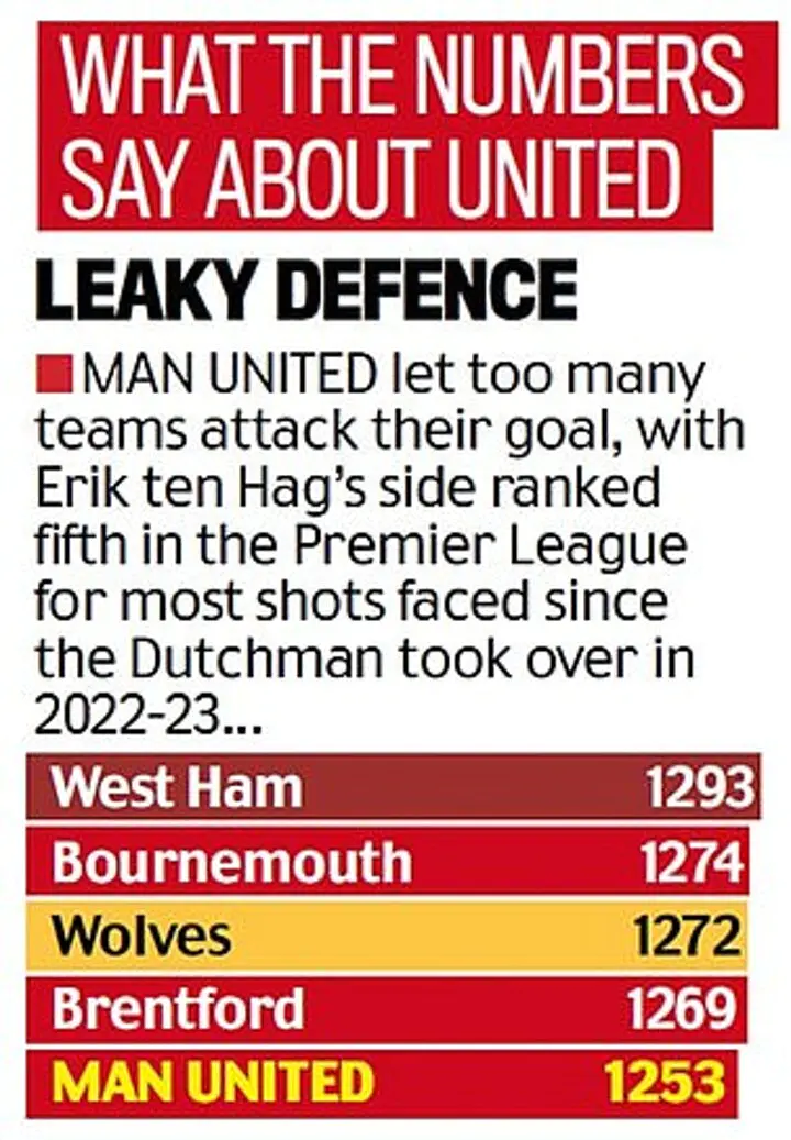 It’s in the wide areas where United have been vulnerable under Ten Hag, with left-back their Achilles heel. As well as Malacia’s long-term absence, Luke Shaw hasn’t played for United since February due to a troublesome hamstring injury.